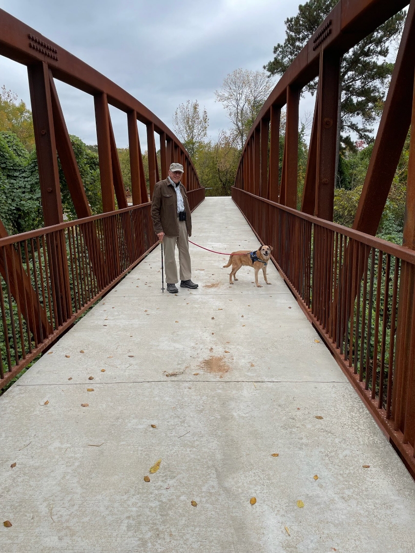 - Bob standing on the bridge that he was instrumental in getting built. He’s with his friend Max