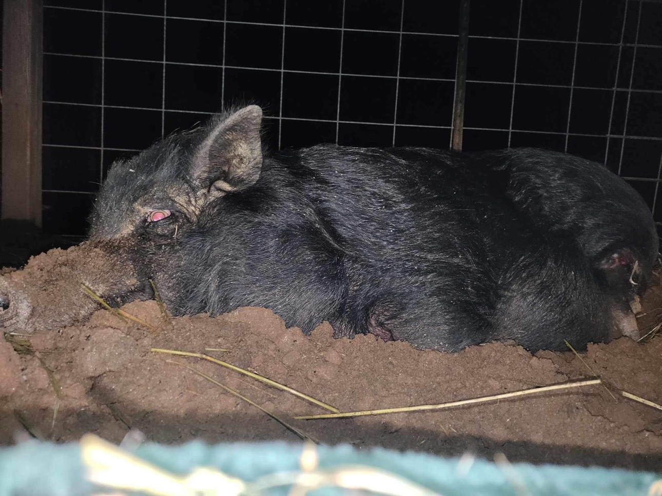 Amy works with several agencies to rescue these cute babies. Law enforcement, local police, animal control and the Agricultural Crimes department all come to her with requests for help. She has seen some really bad situations such as an older pig at a meth house who had been attacked by starving dogs and left for dead. This pig was between 15 – 17 years old. Animal control did nothing for her. They took all the other animals, but left Buttercup behind. Amy took her home, and with the help of her mom, flushed out all of her wounds and packed them until she healed. Amy slept next to her in her pen on her first night, to make her feel safe.