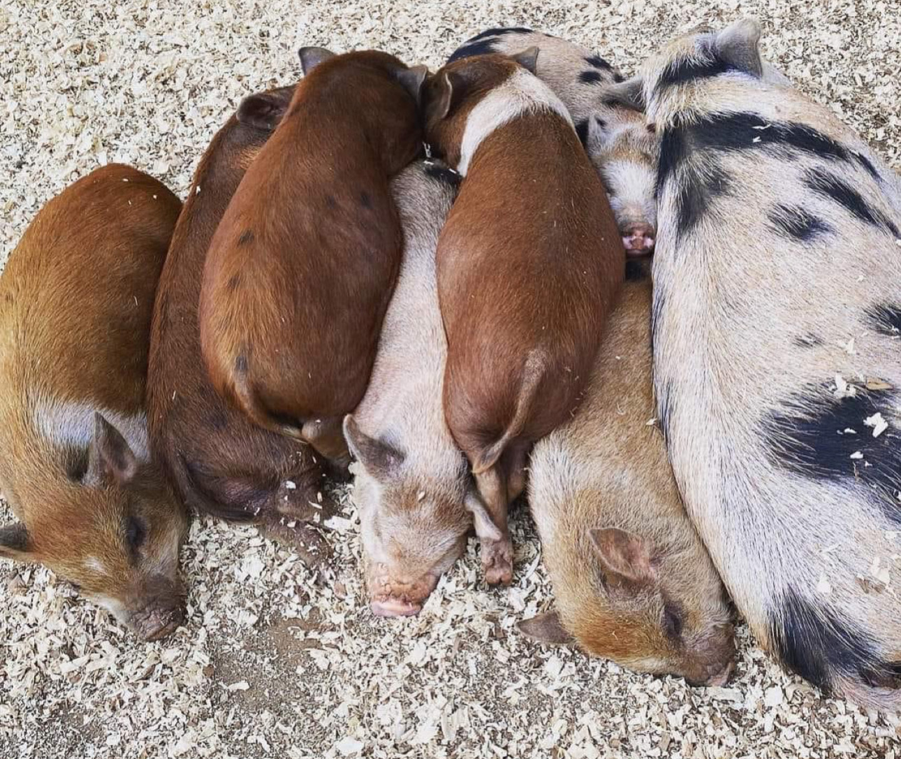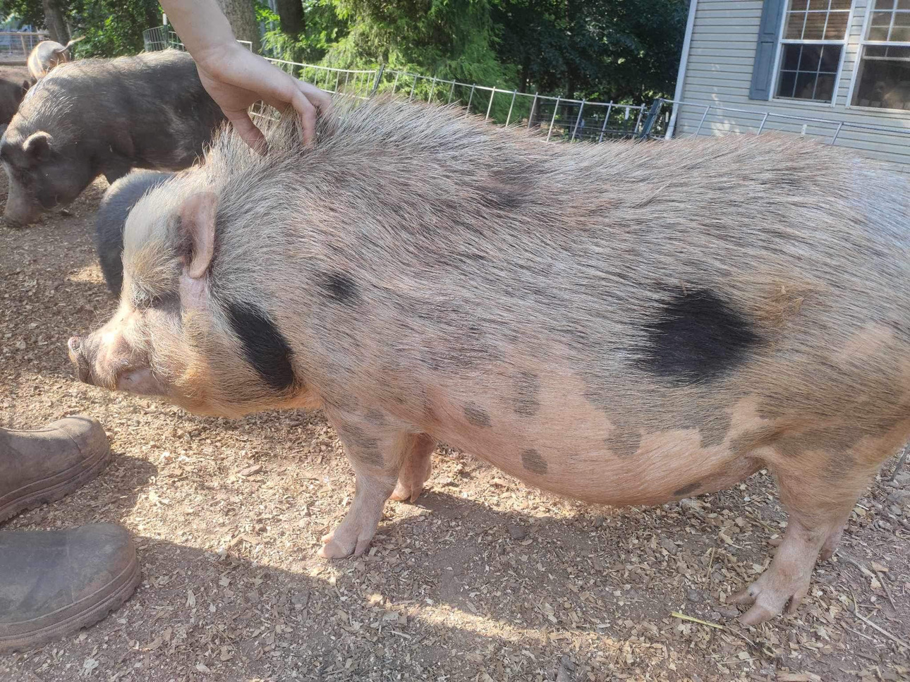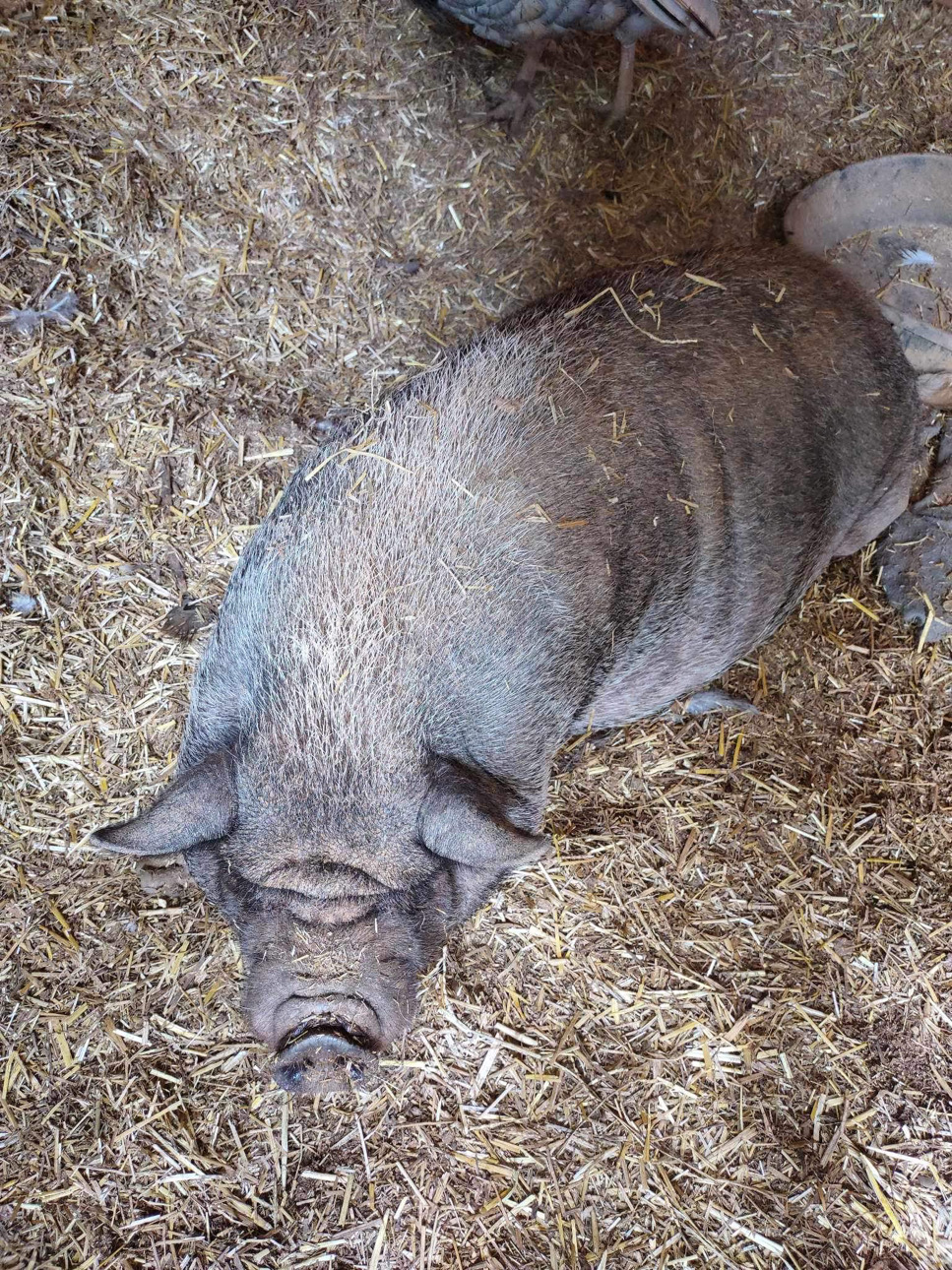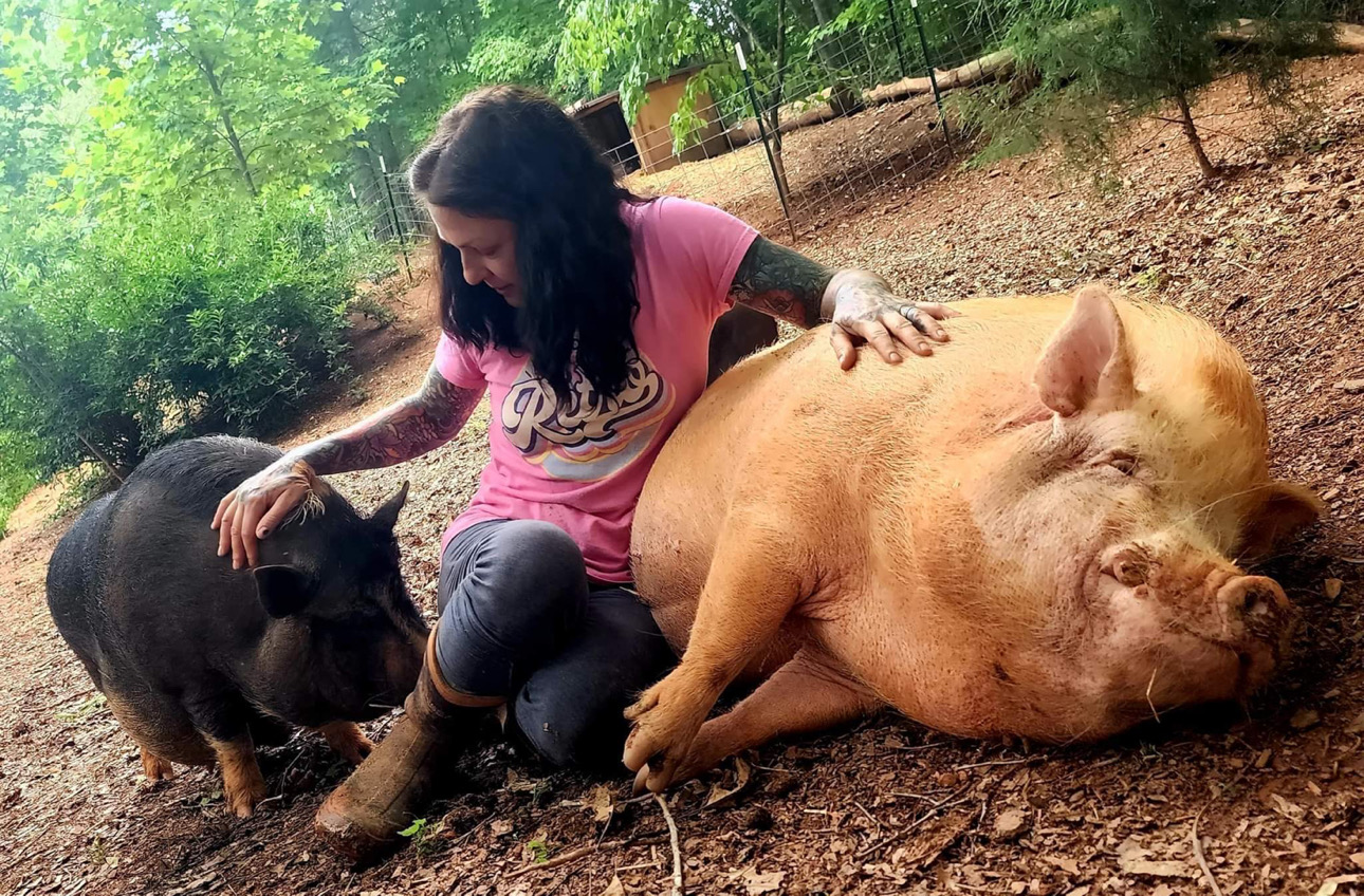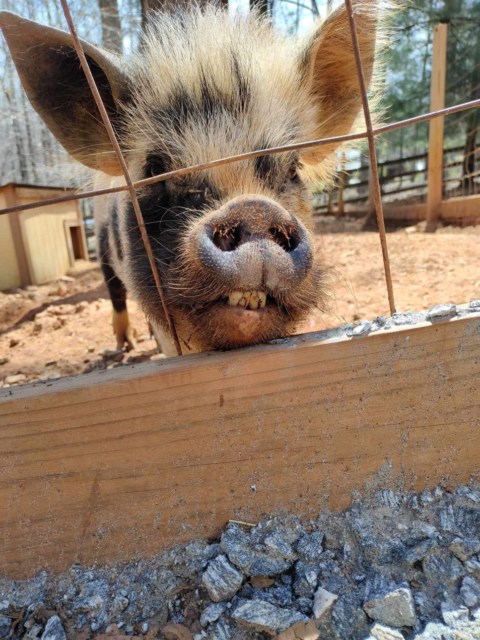 It all started back in 2019. Amy initially wanted to have a few farm animals when she moved her 2 boys, Gunner and Rocket, herself and her mom from Florida to her parents farm in North Carolina after her step dad passed. She wanted the boys to grow up around animals like she did, so they got chickens, ducks and a couple of pigs. Amy found a pig at a shelter, and when she went to pick him up, she found that he had a couple of friends with him. So she decided to take them all! 3 pigs quickly turned into 6, and they packed up and moved everyone to the farm.
