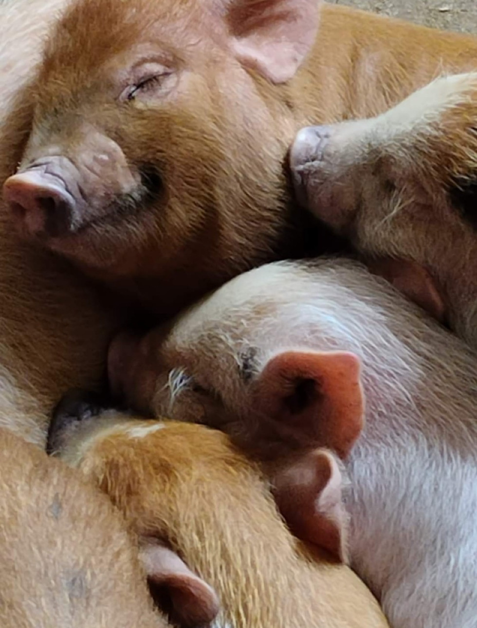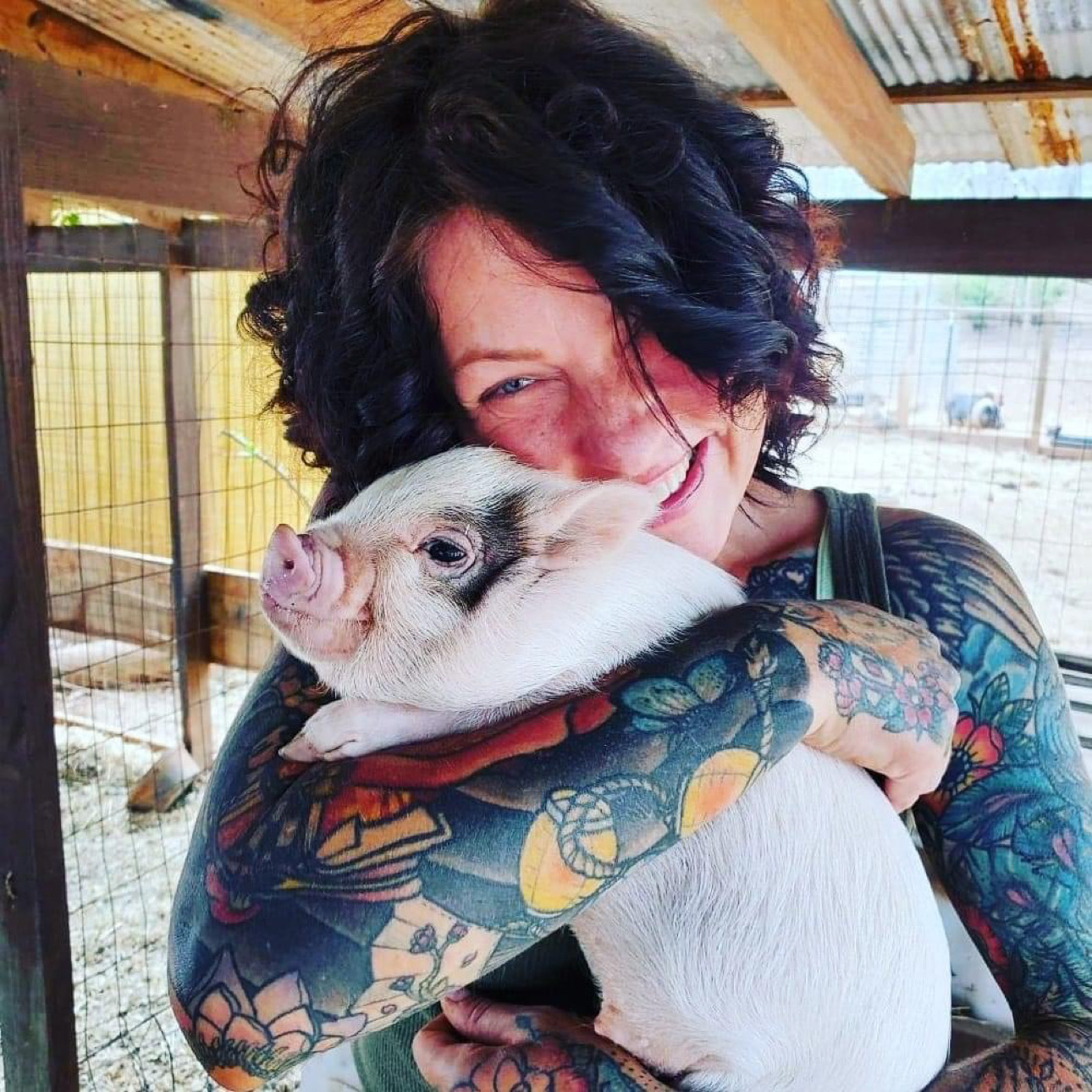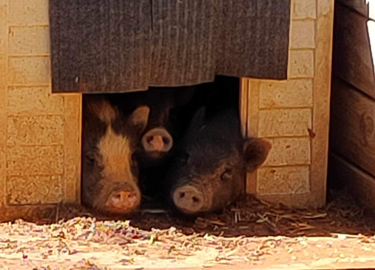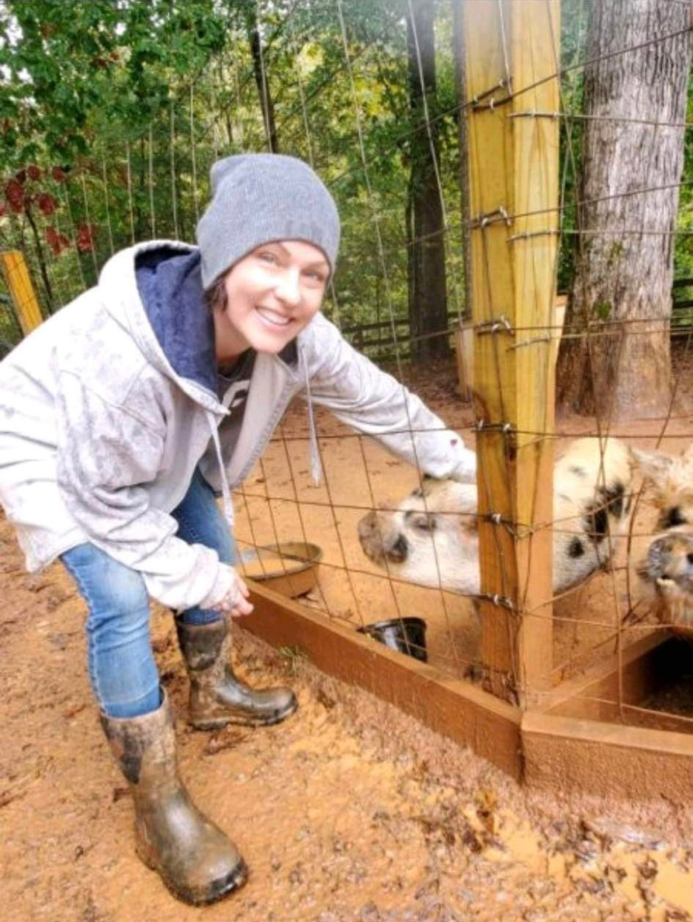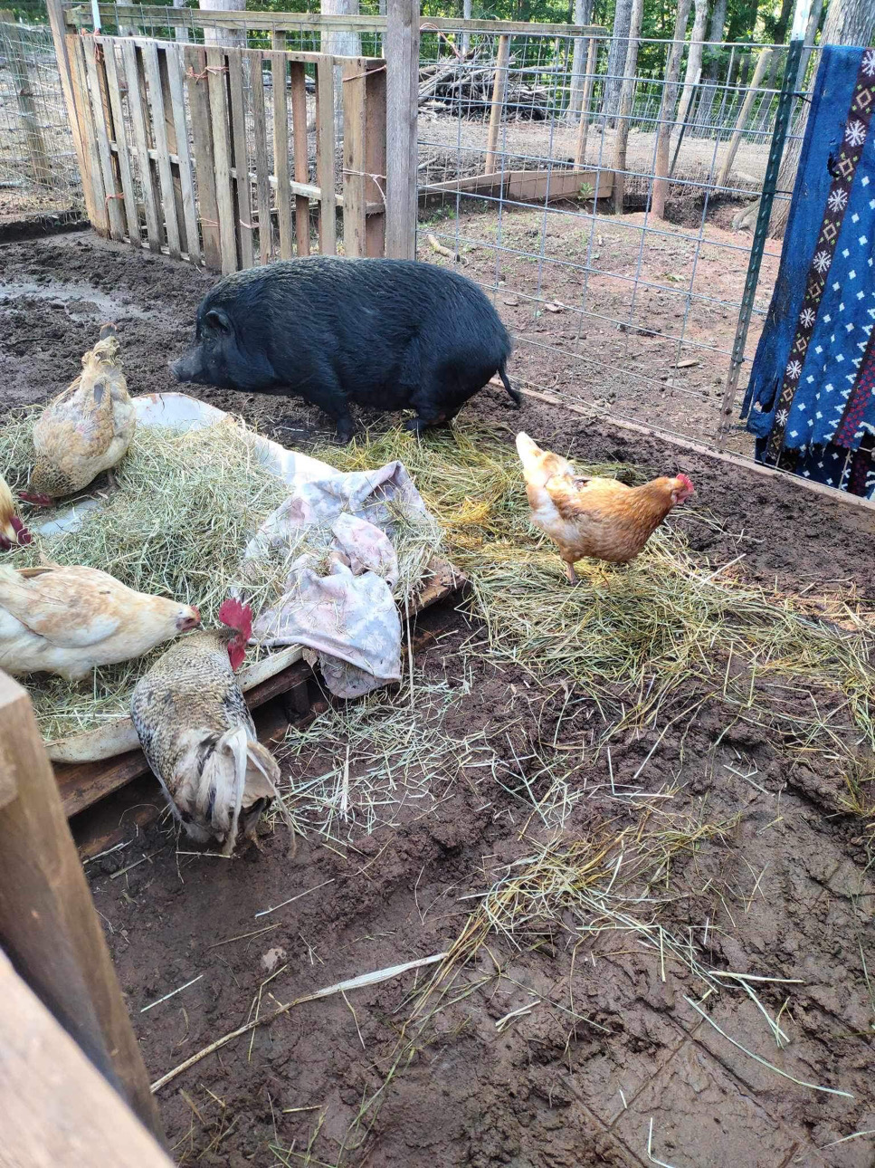It all started back in 2019. Amy initially wanted to have a few farm animals when she moved her 2 boys, Gunner and Rocket, herself and her mom from Florida to her parents farm in North Carolina after her step dad passed. She wanted the boys to grow up around animals like she did, so they got chickens, ducks and a couple of pigs. Amy found a pig at a shelter, and when she went to pick him up, she found that he had a couple of friends with him. So she decided to take them all! 3 pigs quickly turned into 6, and they packed up and moved everyone to the farm.