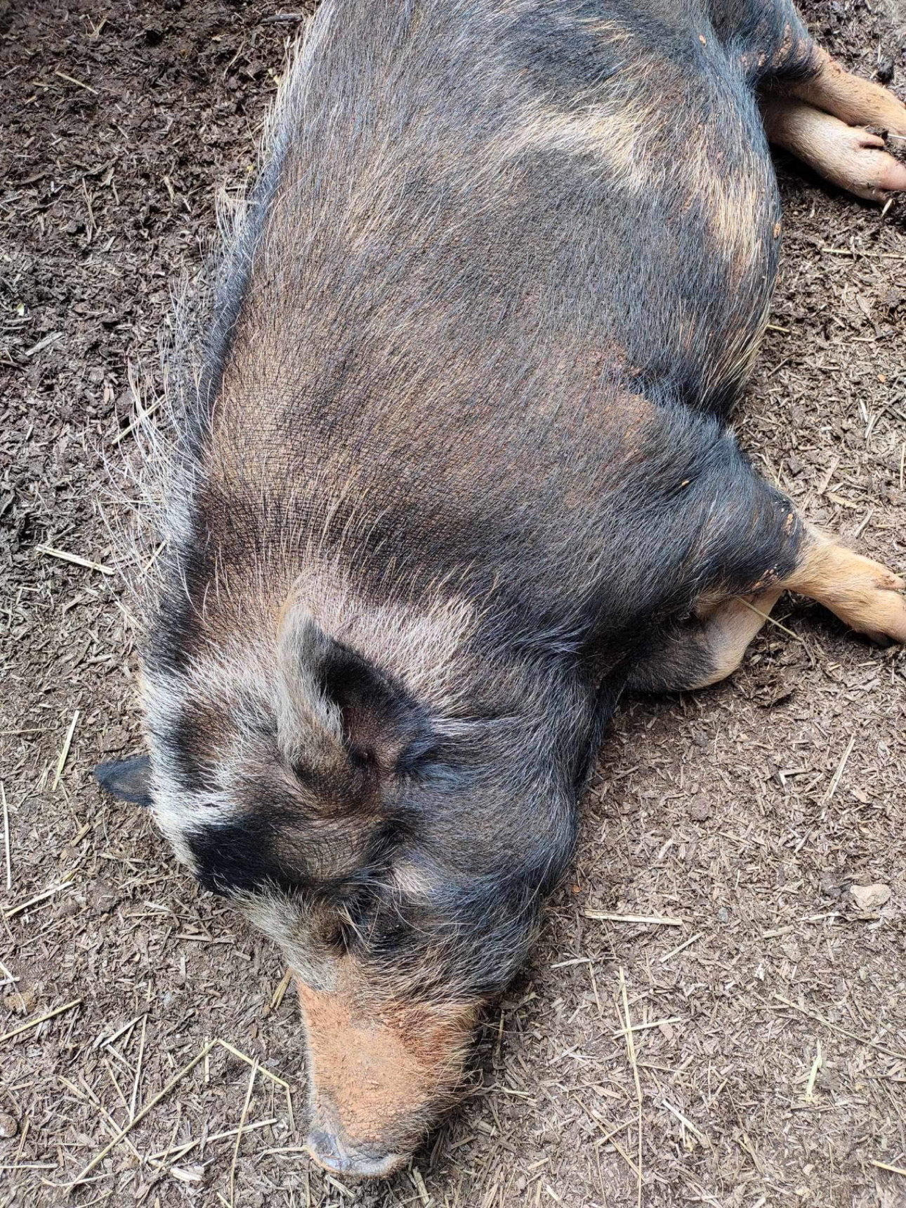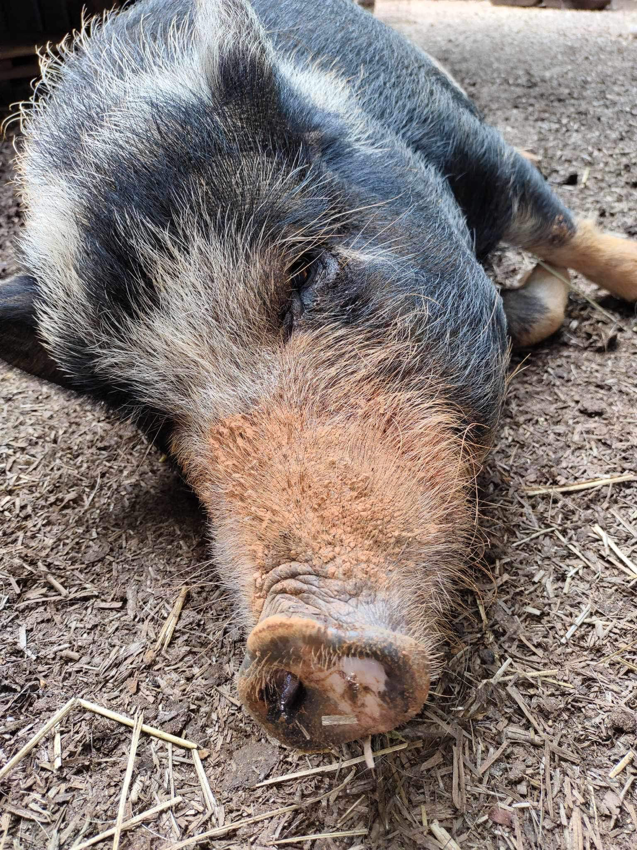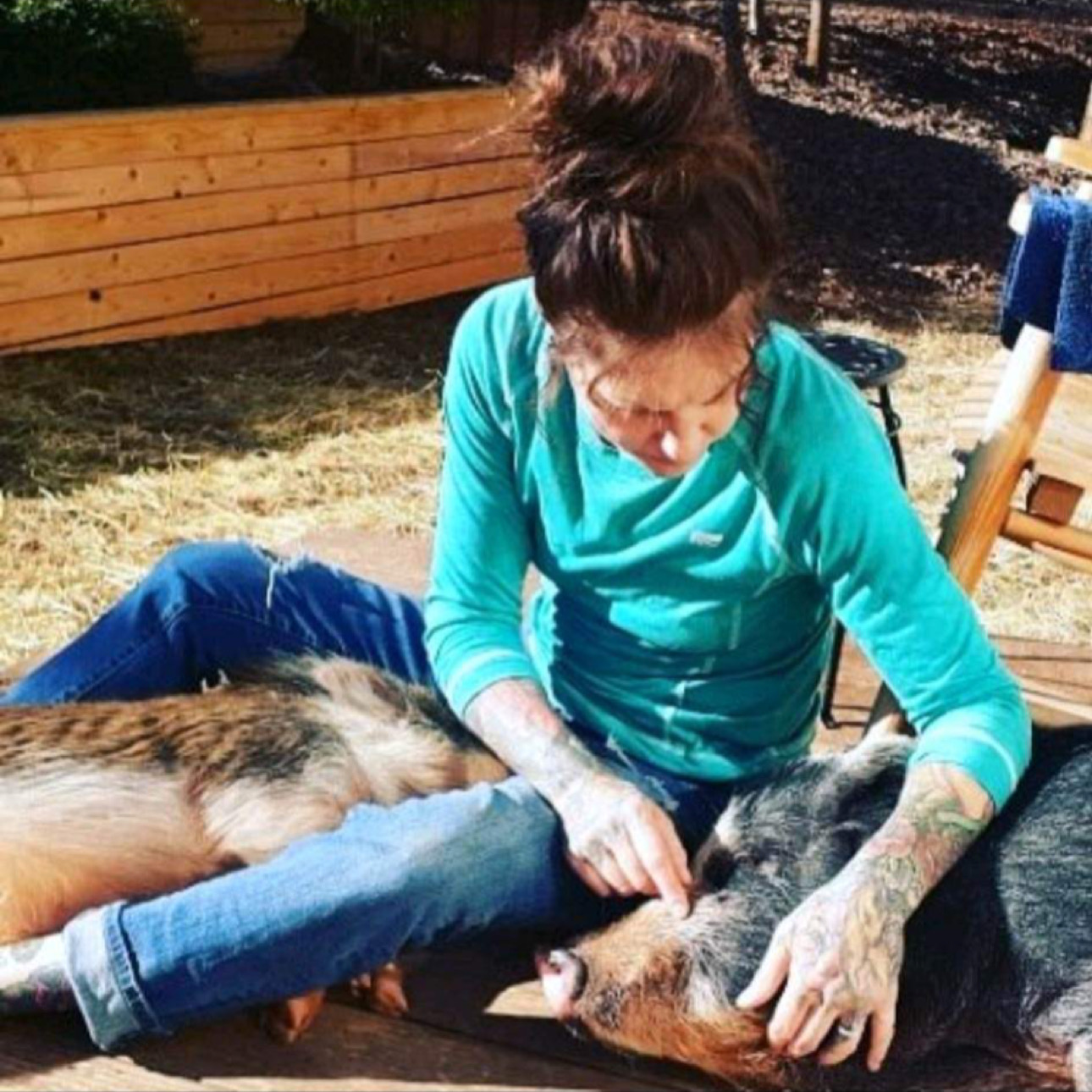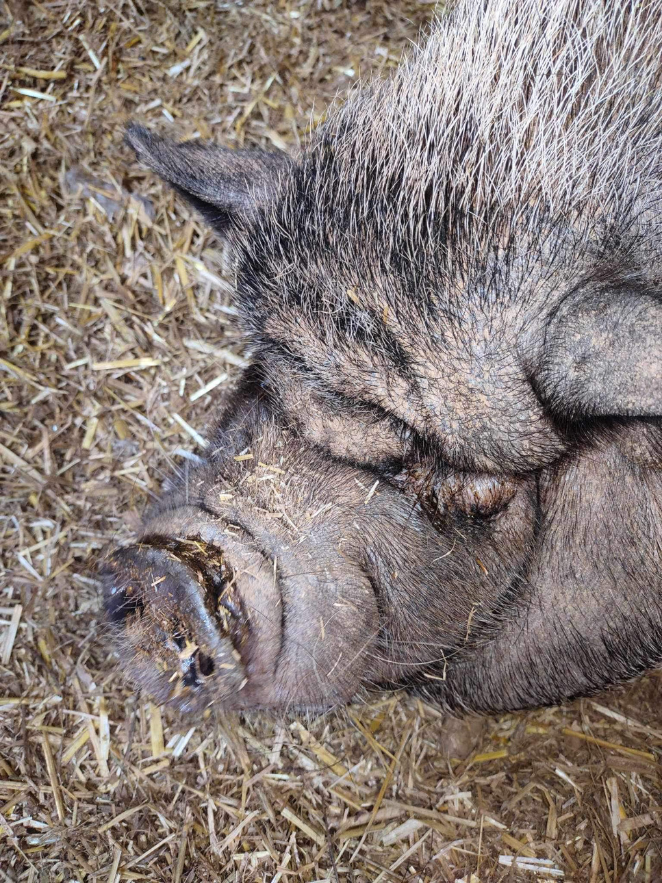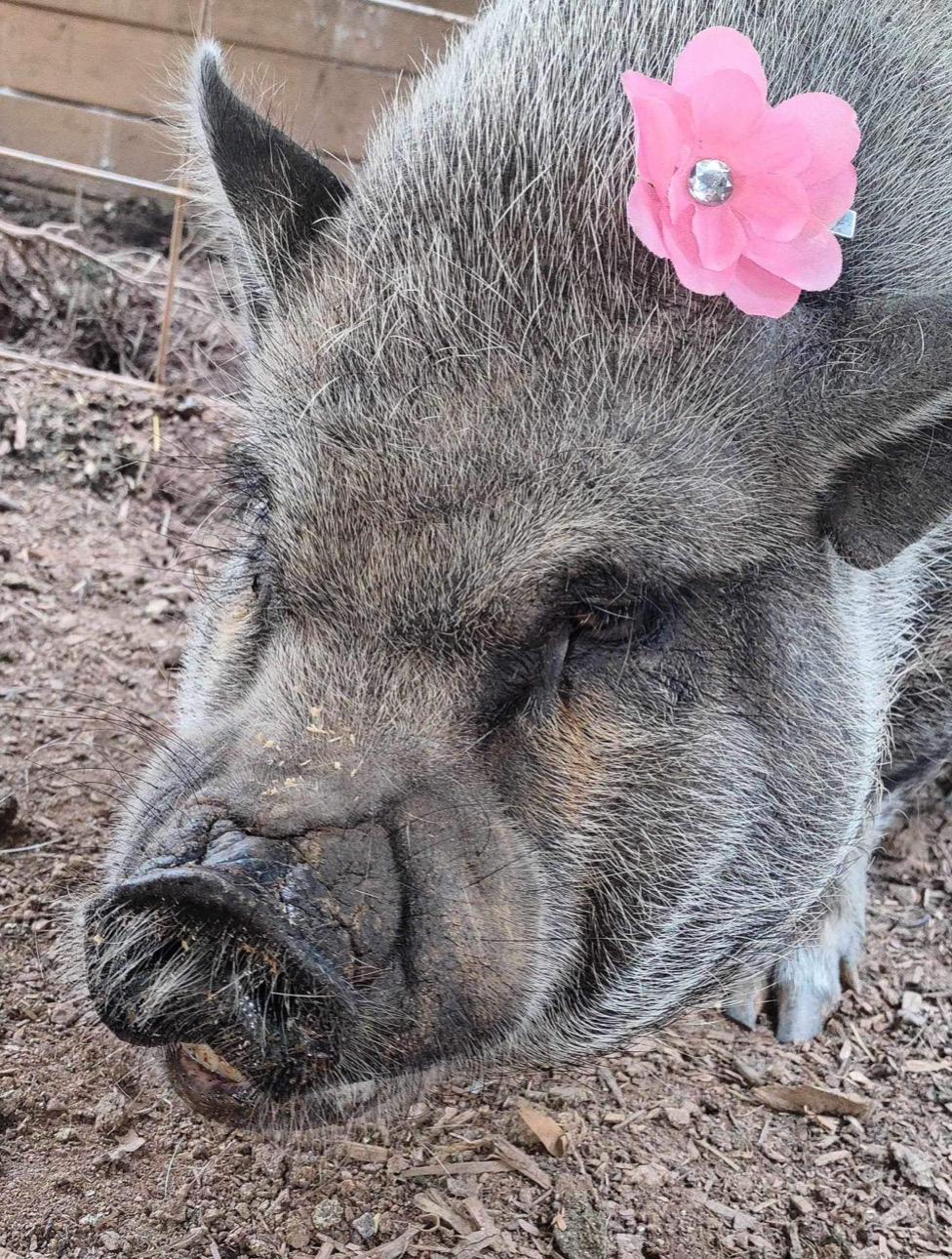 Amy quickly realized there was a dire need for pig re-housing. Coincidentally, 2019, the year Harley-June began, was the Chinese Year of the Pig. So of course people thought it would be cute to buy a pet pig! Breeders were selling what they called “Micro Pigs” and “Teacup Pigs” both of which do not exist. They are actually day-old piglets. People bought them, thinking they would stay tiny and cute and were shocked when they ended up with 70 – 150 pound pets. They had no idea how to care for them, most not realizing that like a dog or cat, they have to be spayed or neutered to avoid health and behavioral issues. Unfortunately, these animals ended up abandoned or abused.
