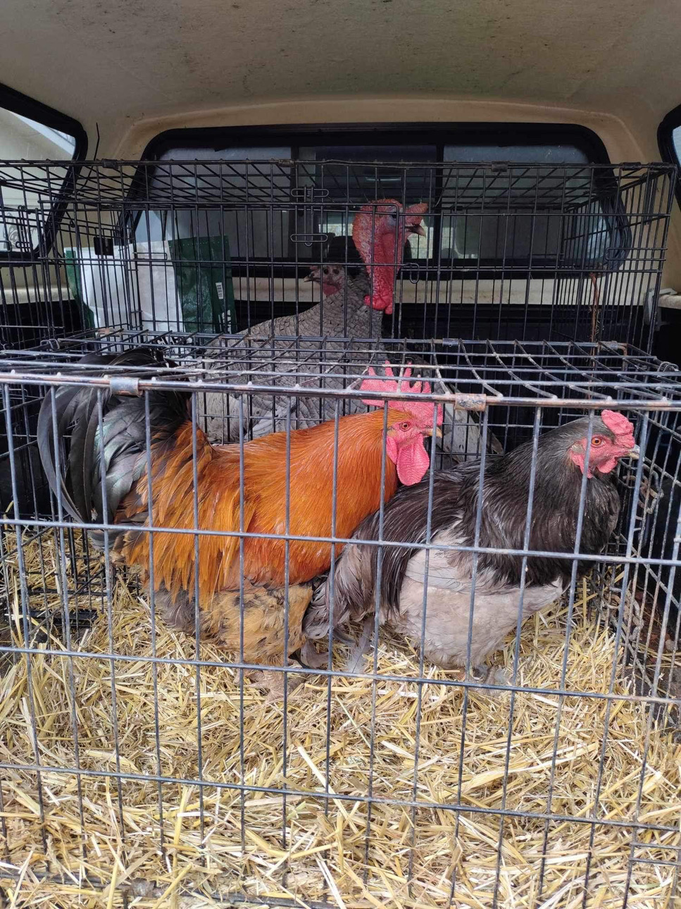 - Flea & Rocco (front) riding with the Turkeys (back) Mary and Blue