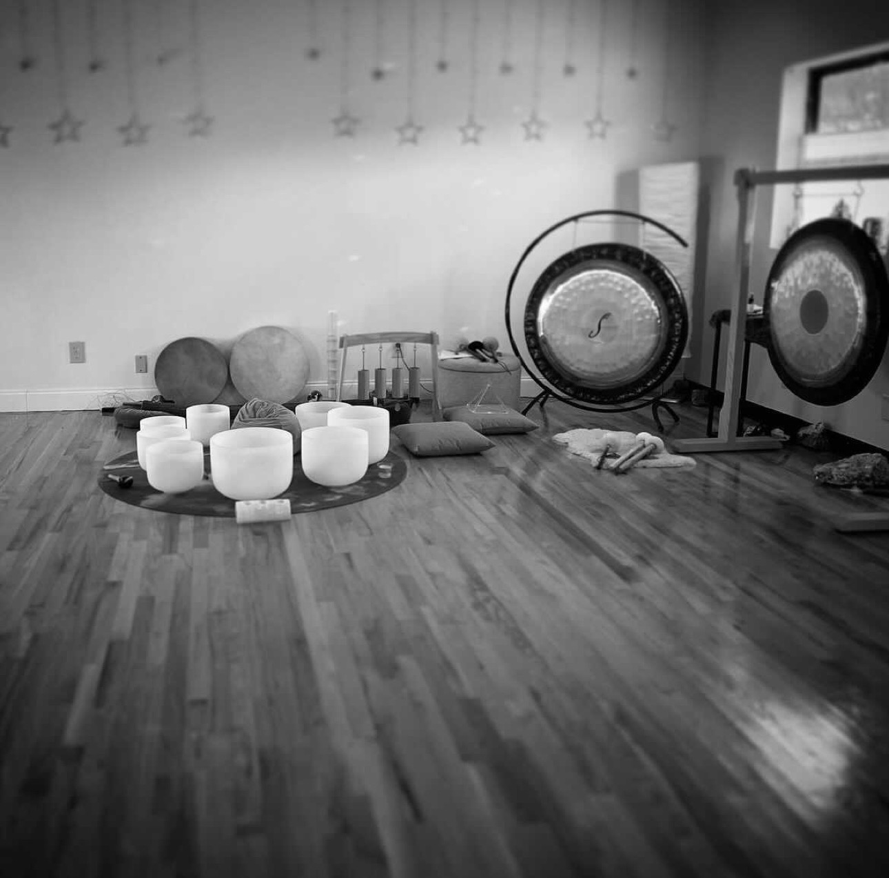 - The Community Room is a space used for Sound Bath sessions, guided meditations and as a gathering space. Laura has created a truly magical place here.