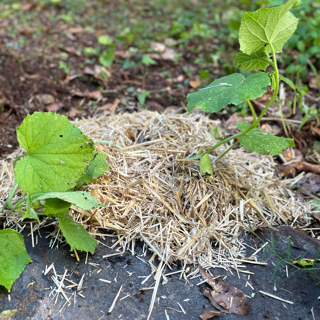 - Newly planted Cukes that will have a trellis soon