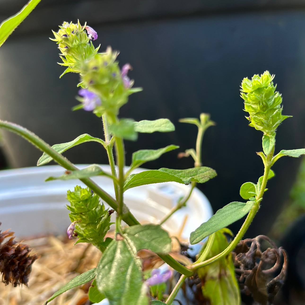 A new member of our garden is an amazing wild herb I found on a walk one day. It’s called Self-Heal, or Heal-All and it’s a great little medicinal herb. I was so excited when I found it and even more excited to see it take when I transplanted it into a pot! It’s a self seeder, so we’re going to let it drop seeds all over the yard.